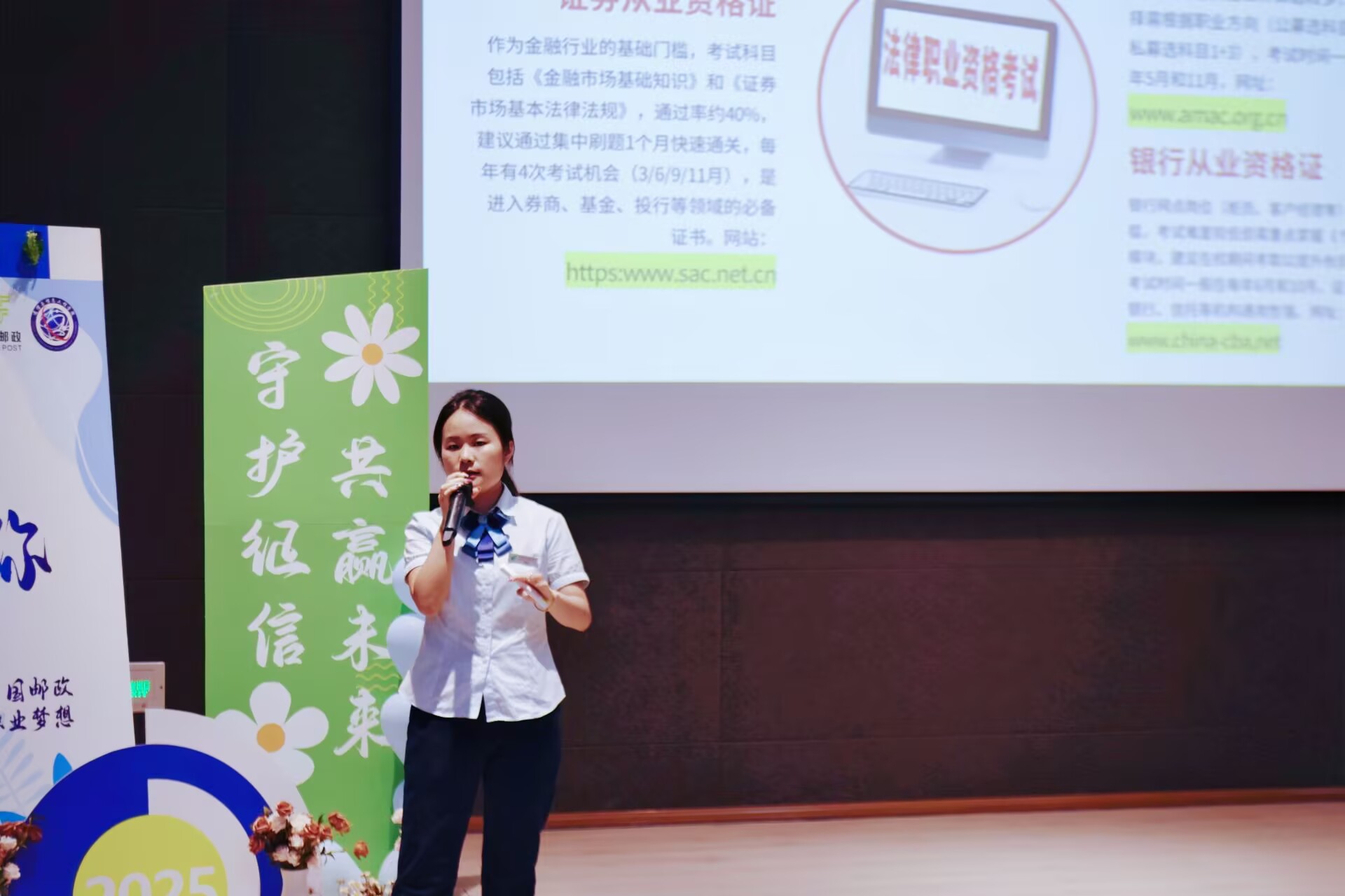 针对职业发展邹老师梳理银行从业相关的必备证书报考要点,更聚焦中国邮政校招,解读政策需求及方向,去引导学生结合自身规划明确职业重点。
