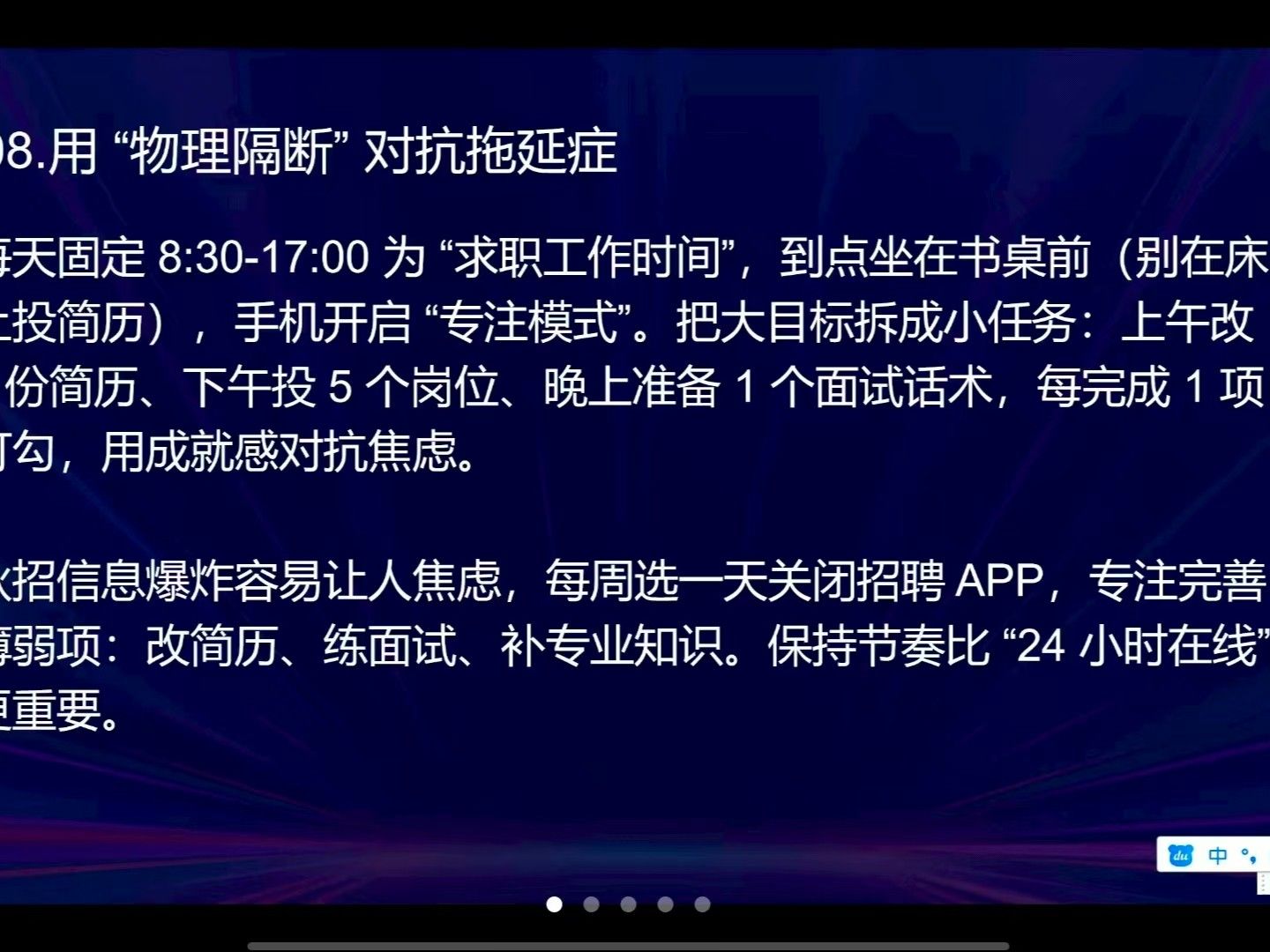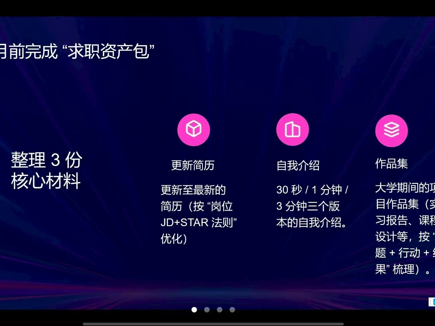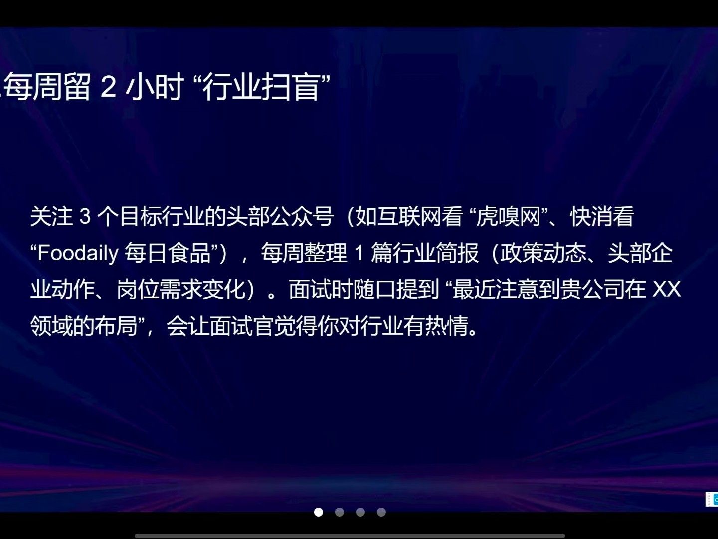 为让同学们深入行业,老师还强调了每周预留2小时“行业扫盲”,通过一些研究报告、企业动态追踪,筑牢对行业的认知根基;简历投递遵循“3×3”原则,提升投递命中率;面试后也有“黄金动作”——24小时内完成“复盘记录”,为后续面试积累经验。