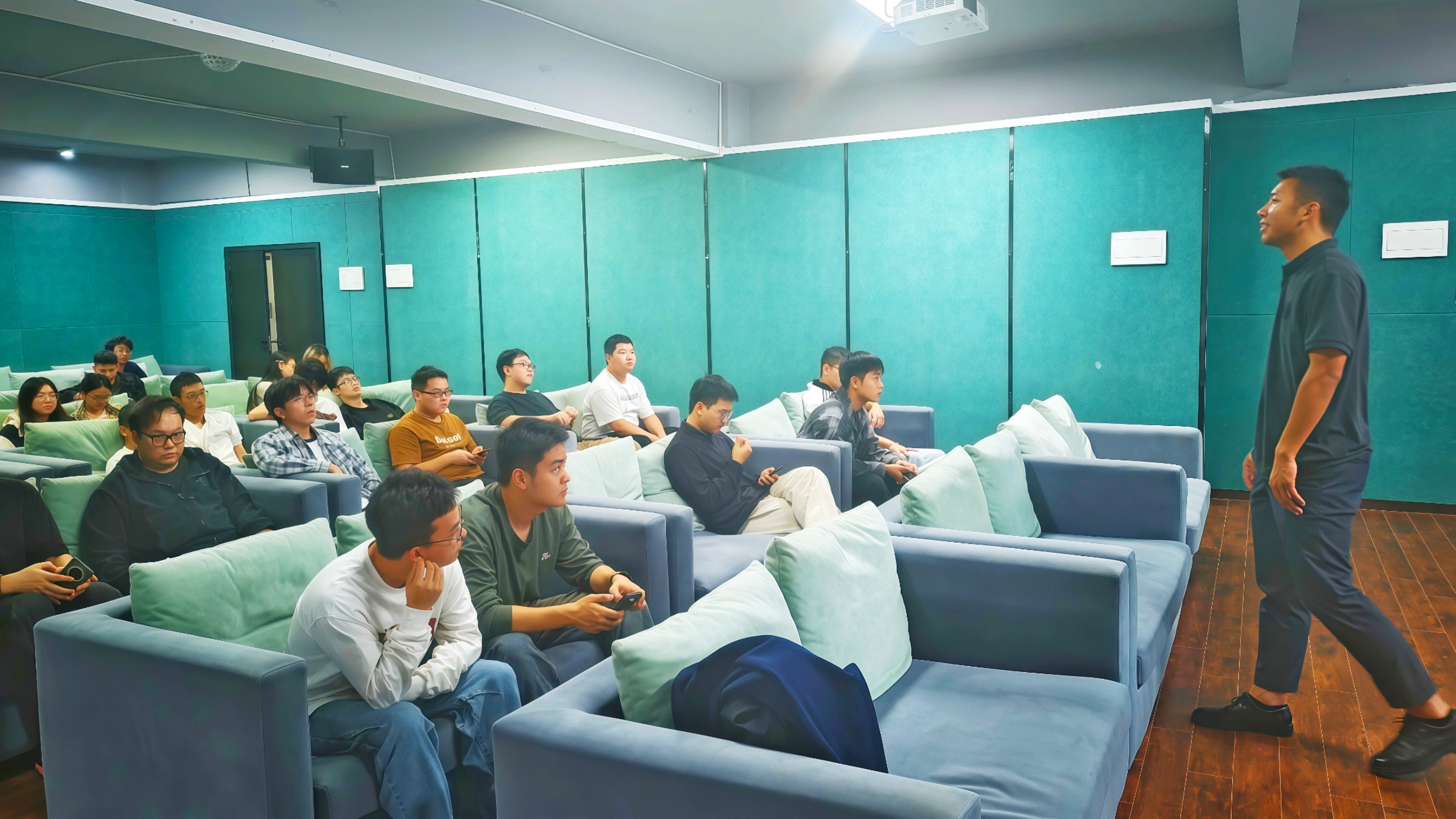 宣讲会伊始,企业招聘负责人冯老师围绕企业核心优势,从两大维度展开分享。先以产业布局与发展历史为切入点,详细解说企业深耕的新能源汽车能源系统领域,以及与吉利汽车合作达成的核心成果,让学子直观了解企业行业竞争力;再通过图文资料与实地实拍素材,介绍企业极具优势的选址——既与杭州等核心商圈高效联动,能快速对接政策红利、资本资源与人才高地,又远离闹市喧嚣,依托生态绿境为员工打造了可激发灵感与创意的工作生活空间。同时,负责人还同步介绍了企业完善的住宿配套与丰厚福利待遇,进一步帮助学子构建对企业的全面认知。