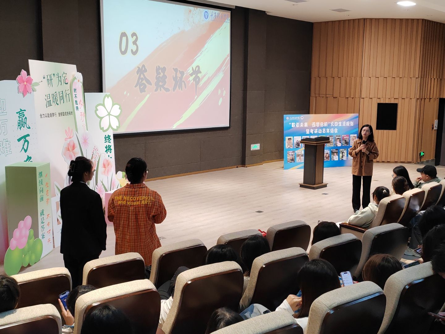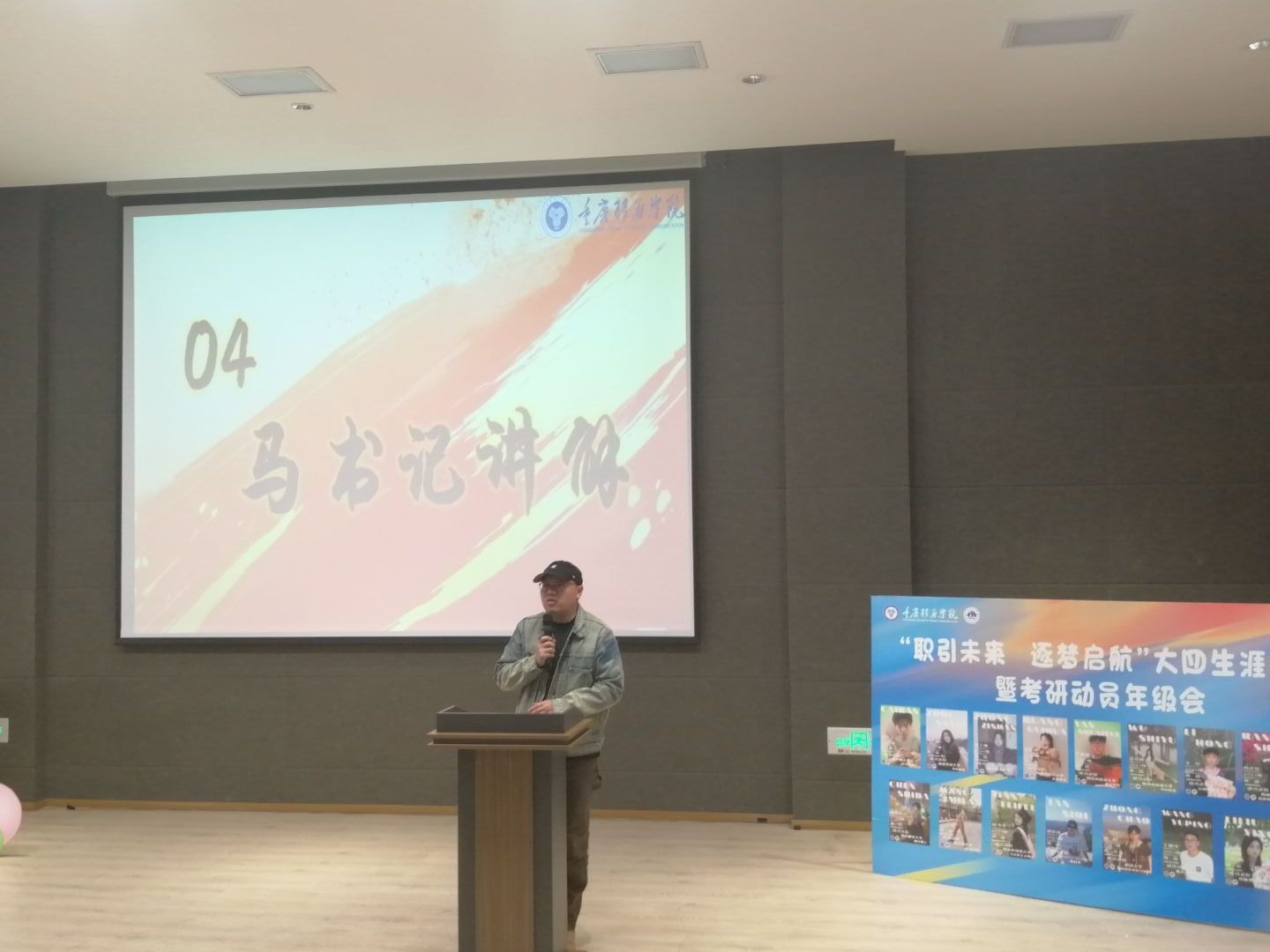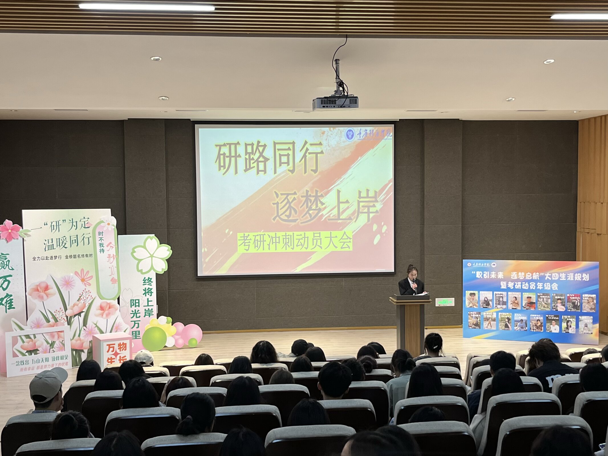 为帮助大四考研学子明确备考方向,掌握复习方法。2025年10月15日下午三点,由外国语学院“职”通未来工坊主办的"研路同行,逐梦上岸"为主题的考研动员大会在六度空间成功举行。本次活动面向大四考研同学,特邀学院罗院长及专业教师参与,通过多元互动形式为同学们注入考研动力。此次大会成功点燃了学子们的备考热情。前路浩荡,未来可期,愿这点亮的研途星光,指引大家披荆斩棘,终抵梦想彼岸!