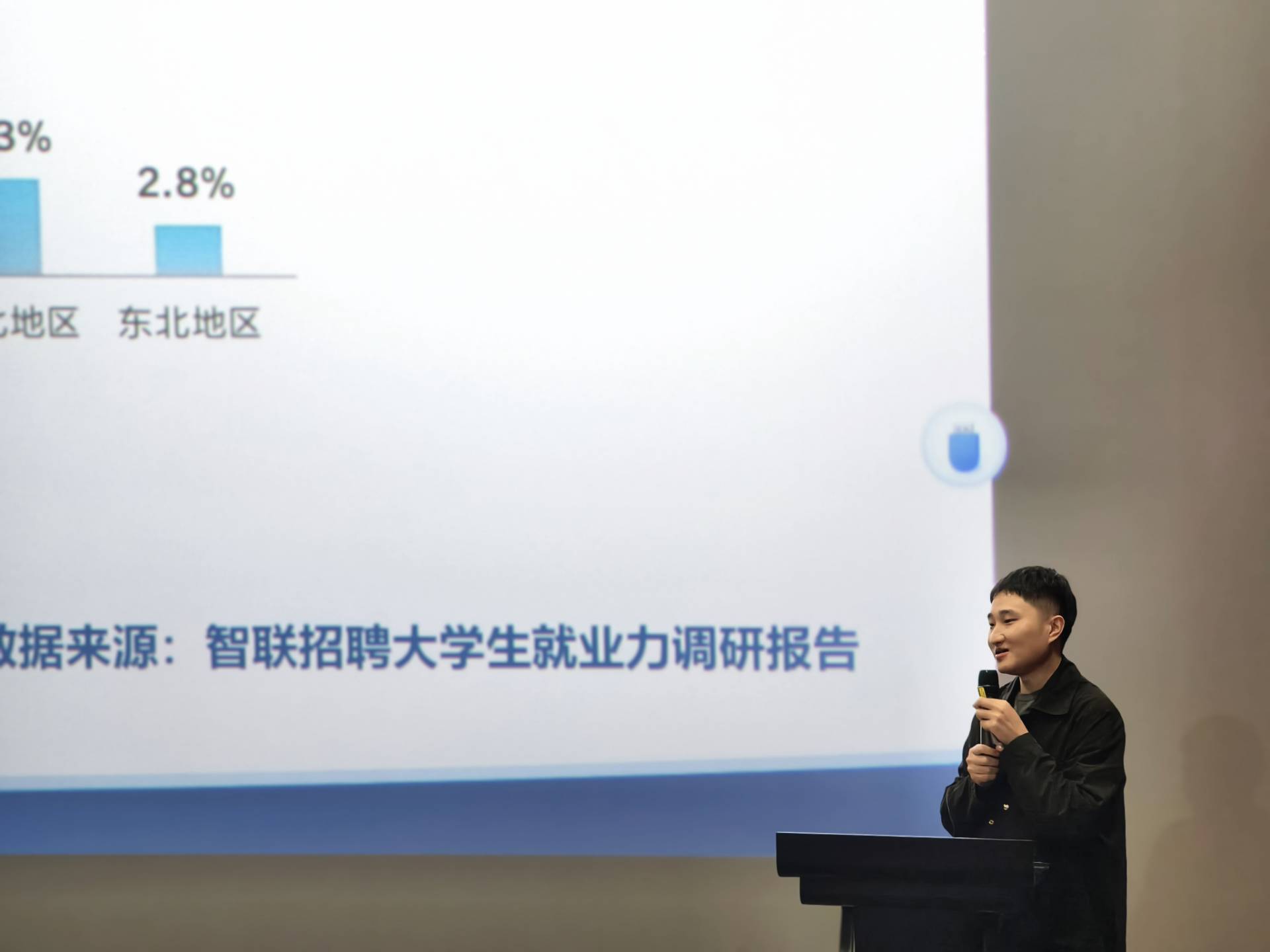 紧接着,智能工程学院就创办主任李杨老师对学院2025届毕业生就业情况进行总结,并对2026届学生情况及就业工作目标展开介绍。她提到,在全院师生共同努力下,2025届就业质量稳步提升。其中,高质量就业成果显著,形成多领域协同发展的就业格局。针对2026届毕业生,李杨老师提到,面对新形势,学院将重点做好多方面工作,在保持高毕业去向落实率的基础上,进一步提升高质量就业比例。