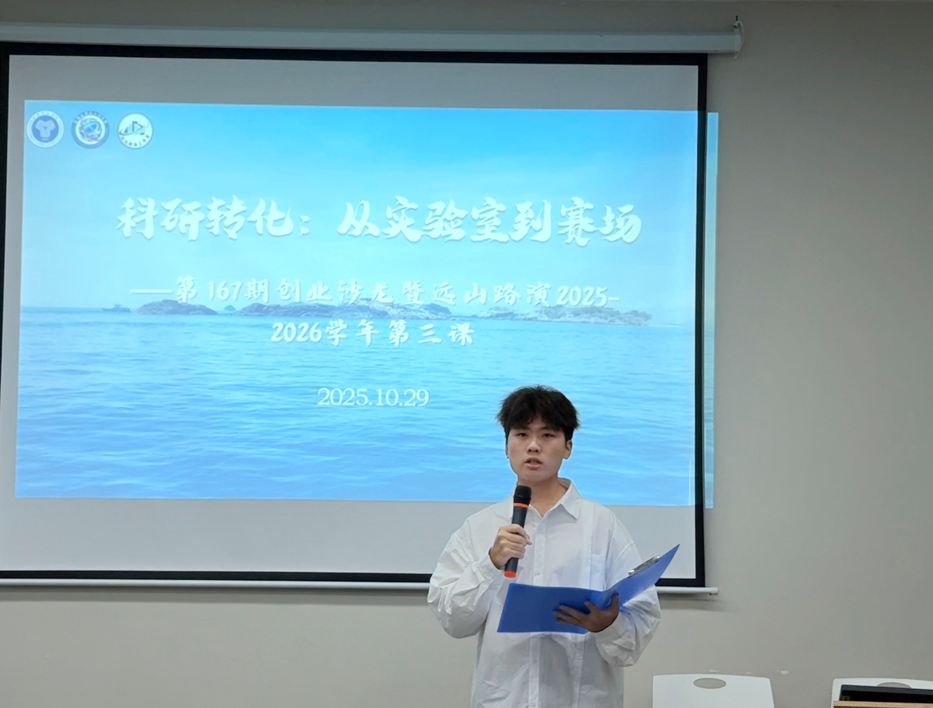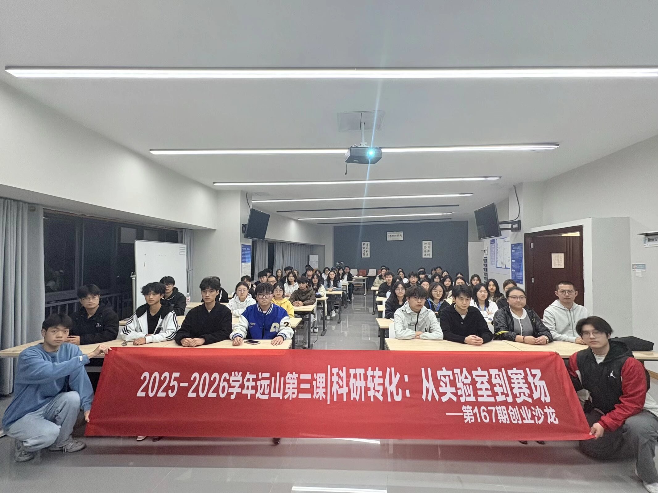 为激发学生创新精神,搭建从理论知识到竞技实践的桥梁,由重庆移通学院就业创业指导与服务中心主办,通信与信息工程学院承办的第167期创业沙龙暨远山路演工作室2025-2026学年第三课,于2025年10月29日晚19点在南湖书院智慧教室顺利举办,本次活动主题为“科研转化:从实验室到赛场”,特邀通信与信息工程学院人工智能技术实验教学中心主任林振善为主讲嘉宾,吸引众多学子参与。