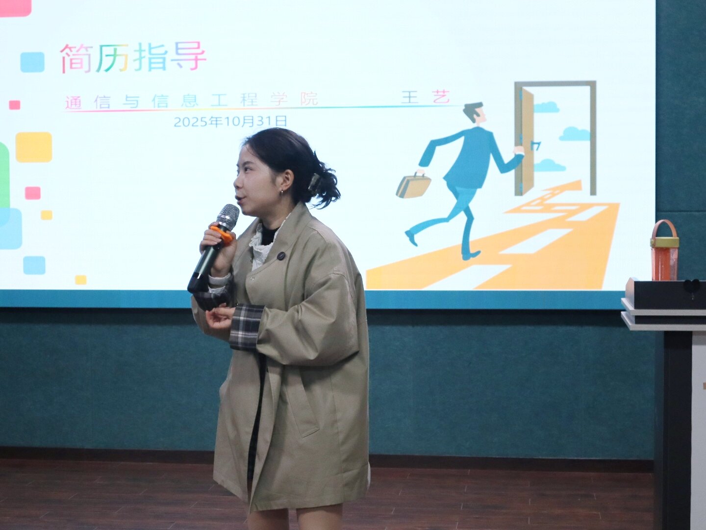 活动伊始,王艺老师围绕“简历如何体现竞争力”展开分享,结合就业市场对人才的需求趋势与学生简历撰写的常见痛点,点明简历内容与岗位需求精准匹配对求职成功的关键作用,迅速引发学生共鸣。分享中,王艺老师一方面详细讲解简历架构优化技巧,强调需根据岗位要求突出专业技能、项目经历与实习成果,避免“模板化”呈现;另一方面针对简历细节打磨给出建议,比如如何用数据化成果展现个人能力、如何通过经历描述体现岗位适配性,让学生直观掌握简历“加分项”打造方法。