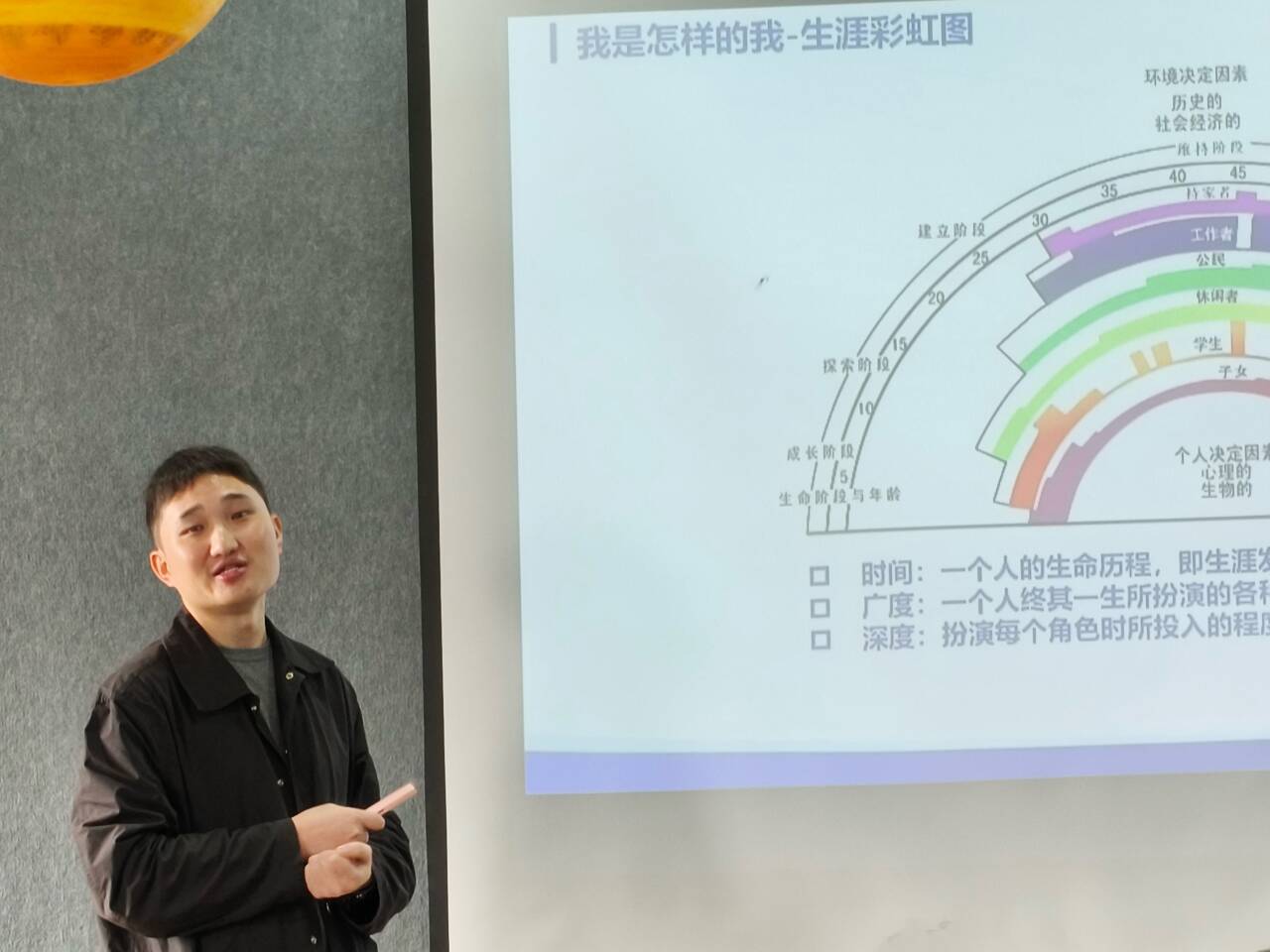 认知自我的特质是寻找职业方向的重要前提。在此次团辅活动中,伍早金老师运用六维绘画,让同学们从中明晰自身特质是一场主动探索的过程,通过绘制生涯彩虹图,同学们从生命周期的纵向视角,直观地看到职业生涯被划分为成长、探索、确立、维持与衰退等不同年龄阶段。这使同学们深刻认识到,成功的职业生涯不仅在于专业成就,更在于如何智慧地平衡与协调这些同时存在的角色,实现全面而和谐的发展。因此同学们应该把每一次实践、活动任务当作探索自我的契机,积小步以明方向,以次激励同学们在成长道路上步履稳健地朝向目标前行。