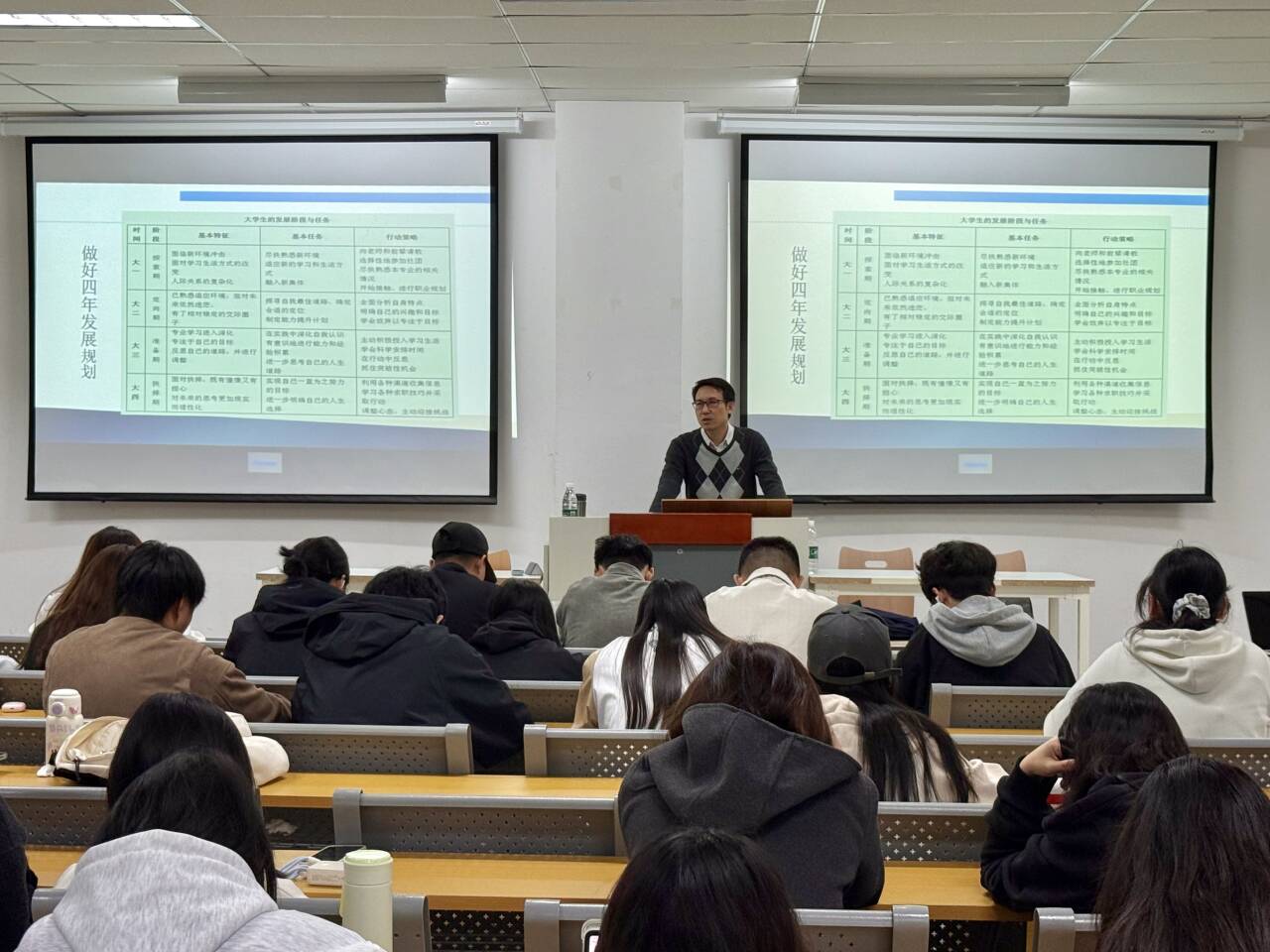 科学合理的职业规划是大学生职业发展的指南针,而躬身践行则是将规划落地的关键引擎。刘景刚老师指出同学们既要设立明确的职业目标,制定切实可行的发展规划,更要通过课程学习、技能提升和实习实践等途径,将规划转化为实际的就业能力。只有做到知行合一,才能在职业发展道路上稳步前行,最终实现个人价值。