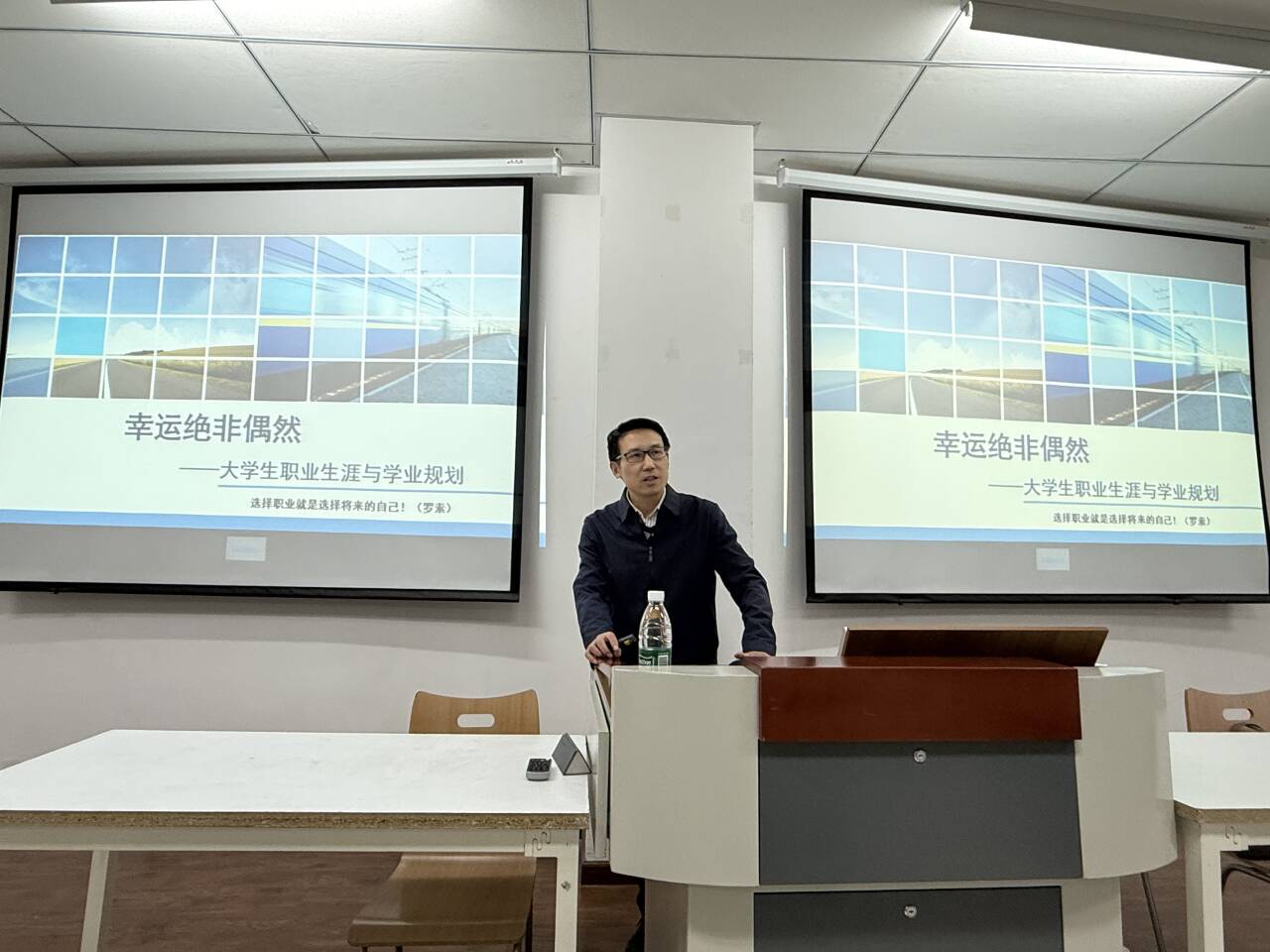 会议伊始,刘景刚老师以“幸运绝非偶然”为切入点,打破同学们对职业发展中幸运的认知偏差。刘老师指出,在职业发展与就业过程中,所谓的“幸运”实则是长期积累、充分准备和科学规划的必然结果。同学们当以理性清晰的职业认知、扎实稳固的能力沉淀以及积极主动的求职姿态,在职业发展的赛道上稳步奋进,于就业竞争的浪潮中把握机遇,铺就清晰且广阔的职业发展之路。