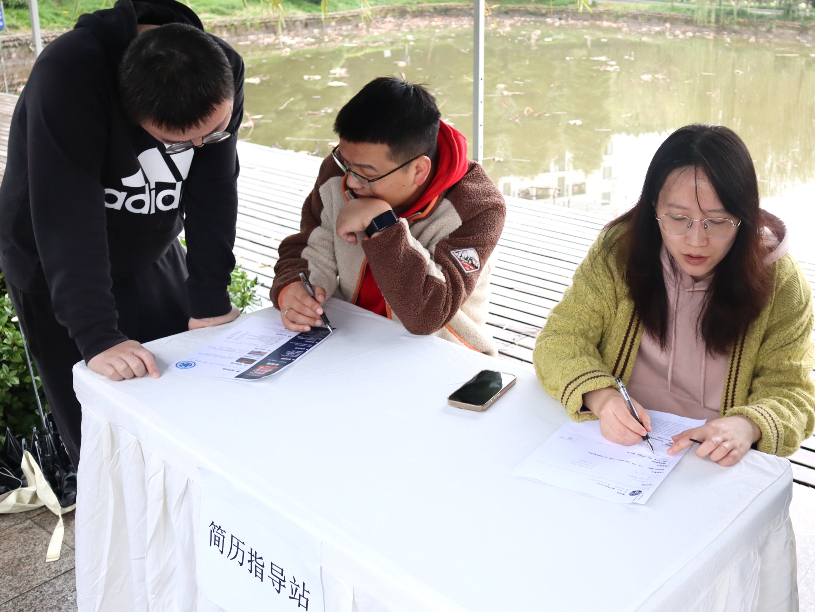 现场还邀请了就业创业导师库的三位老师,为在场同学提供“一对一”简历诊断修改服务。指导中,老师们围绕求职意向精准度、经历价值呈现、岗位关键词匹配三大核心维度展开讲述,结合行业标准给出定制方案——技术岗重点补充项目开发、技能认证细节,行政与市场岗强化策划执行、沟通协作经历的逻辑呈现等。三位老师悉心指导,针对“经历罗列无重点、能力体现缺数据、岗位适配性模糊”等共性问题,为同学们的简历锦上添花。