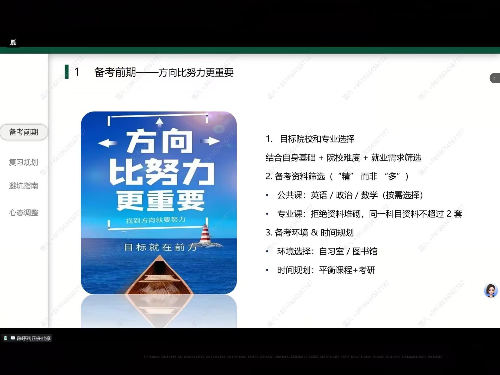 分享会上,陈惠玲学姐围绕同学们的专业性与备考痛点展开分享。针对考研的各类难题,陈惠玲学姐通过三个阶段表明夯实基础的重要性,搭建知识框架;有效刷题,提升解题能力;聚焦模考,巩固高频考点。为同学们明确了各阶段的复习重点与目标。为同学们提供兼具针对性与可操作性的备考方案,帮助同学们明晰复习重心,为后续高效推进备考进程注入强劲动力。