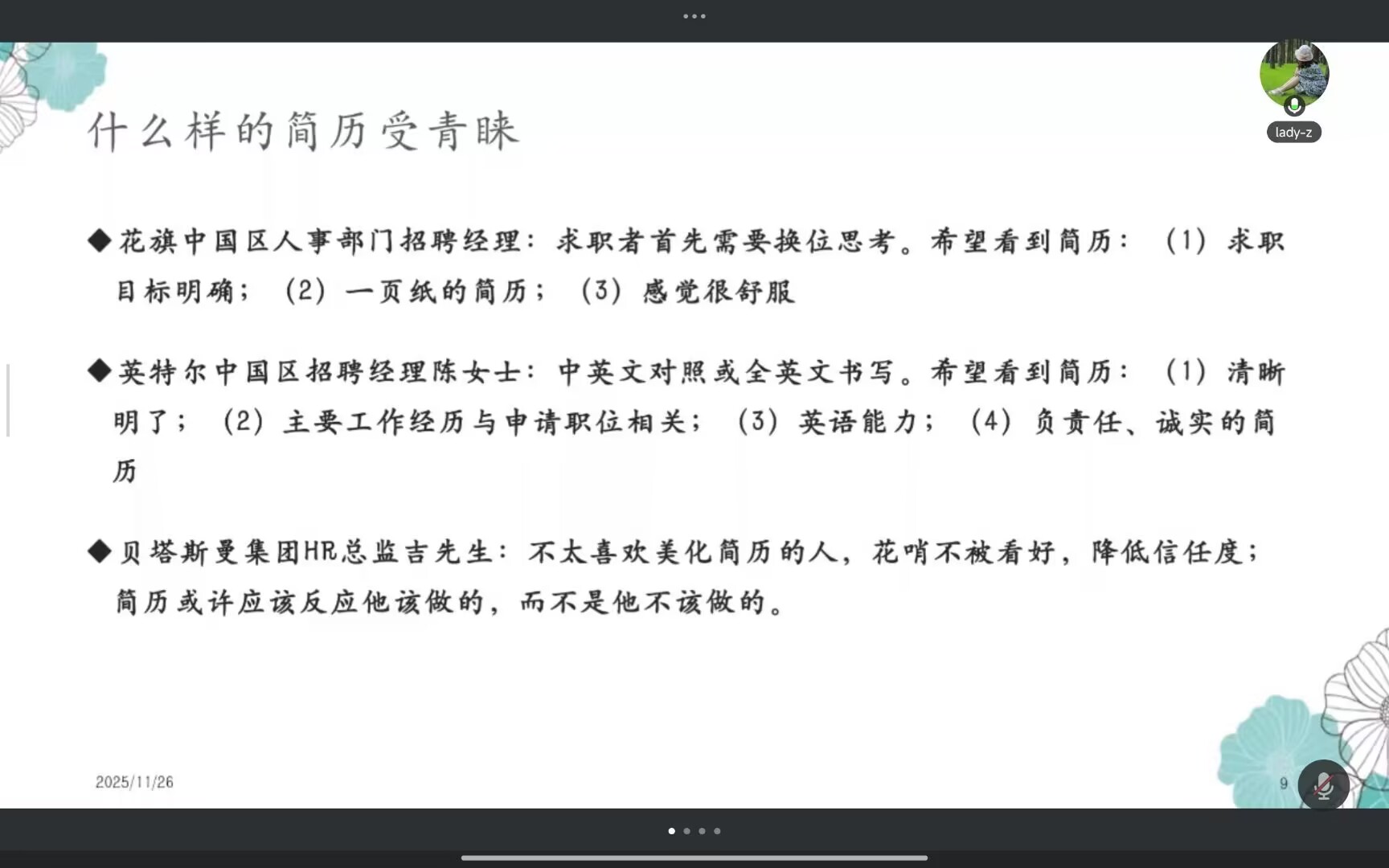 “之前写简历总陷入‘堆经历'的误区,看似满满当当却没重点周老师点透了‘成果量化'的关键,教我用具体数据替代空泛描述,现在终于知道怎么让简历有说服力了!”
