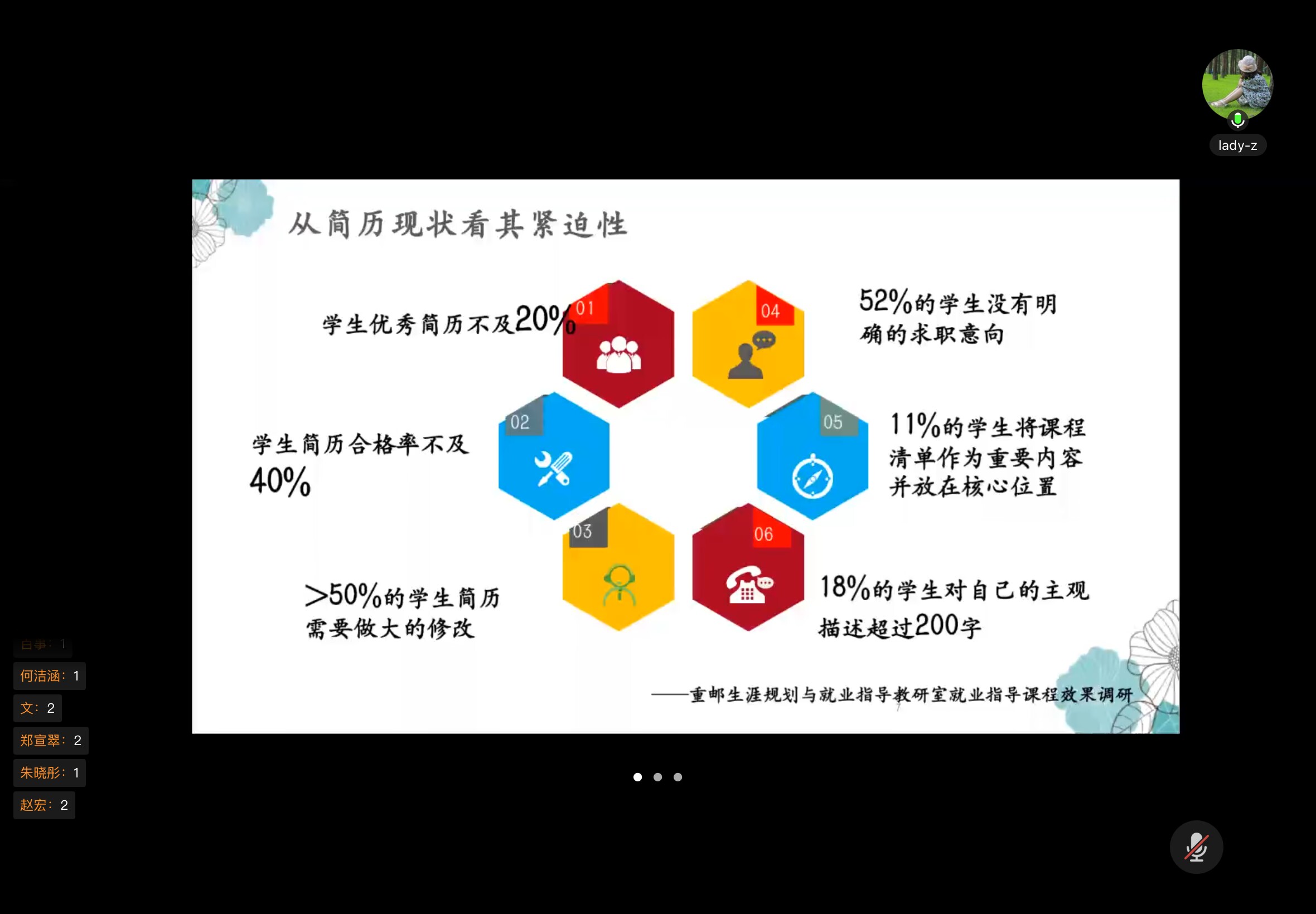 此次线上就业沙龙的举办,不仅为学生与指导老师搭建直接沟通的桥梁,更帮助同学们掌握了简历打磨的核心逻辑。同学们均表示,将结合本次指导内容重新梳理经历、修改简历,为后续求职做好充分准备。希望随着此类精准化就业指导活动的开展,同学们能在求职赛道上少走弯路,以更优质的材料迎接职场机遇。