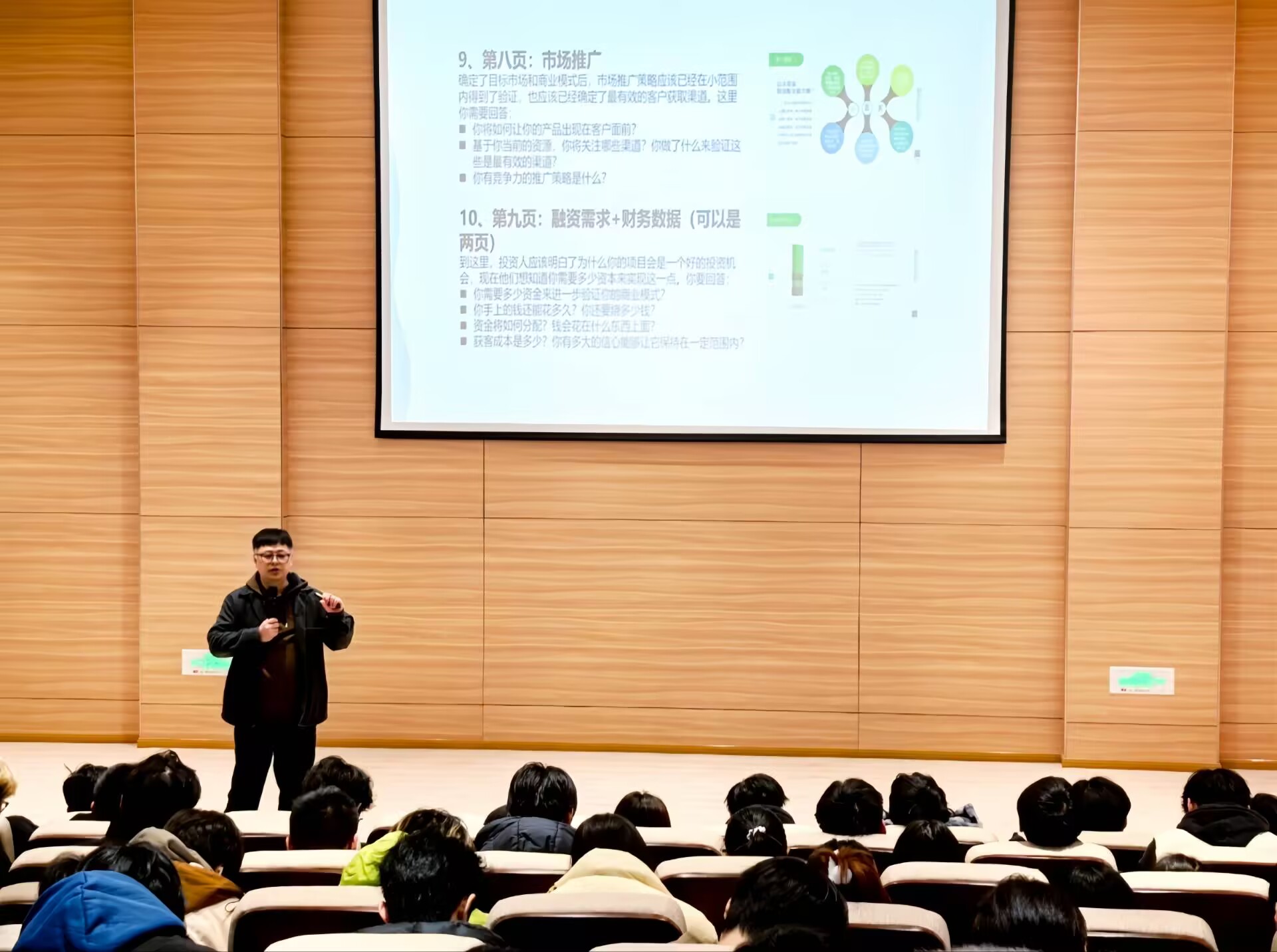 此外,王青老师凭借自身丰富经验,逐一解答了同学们可能遇到的问题。最后,针对双创赛事的评分标准,他分享了如何通过计划书突出项目亮点,帮助同学们精准把握赛事需求,使项目在众多参赛作品中脱颖而出。