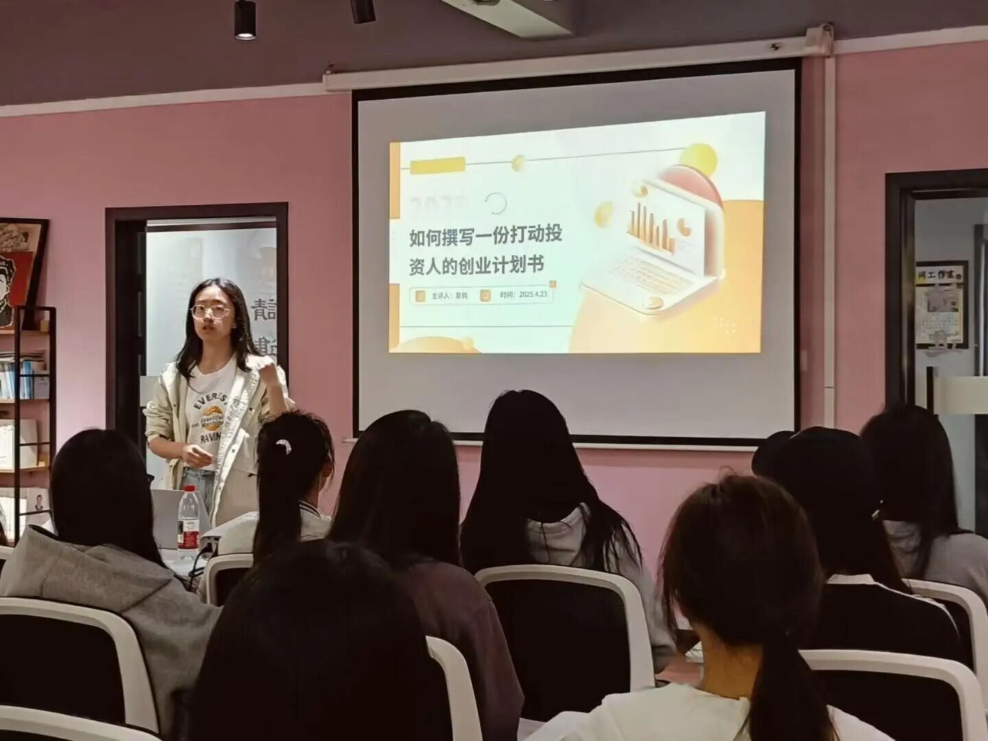 为提高学生的创业实践能力与竞争力,重庆移通学院外国语学院“创赢未来工坊”于2025年4月23日下午14点,在爱莲语言交流室开展“开启创业之旅,掌握关键技能——第150期创业沙龙”活动。本次活动有幸邀请到夏桐老师来为同学们讲解“如何撰写一份打动投资人的创业计划书”,帮助同学们获取行业经验,了解政策趋势,拓展人脉资源,激发创业思维,明确职业方向。
